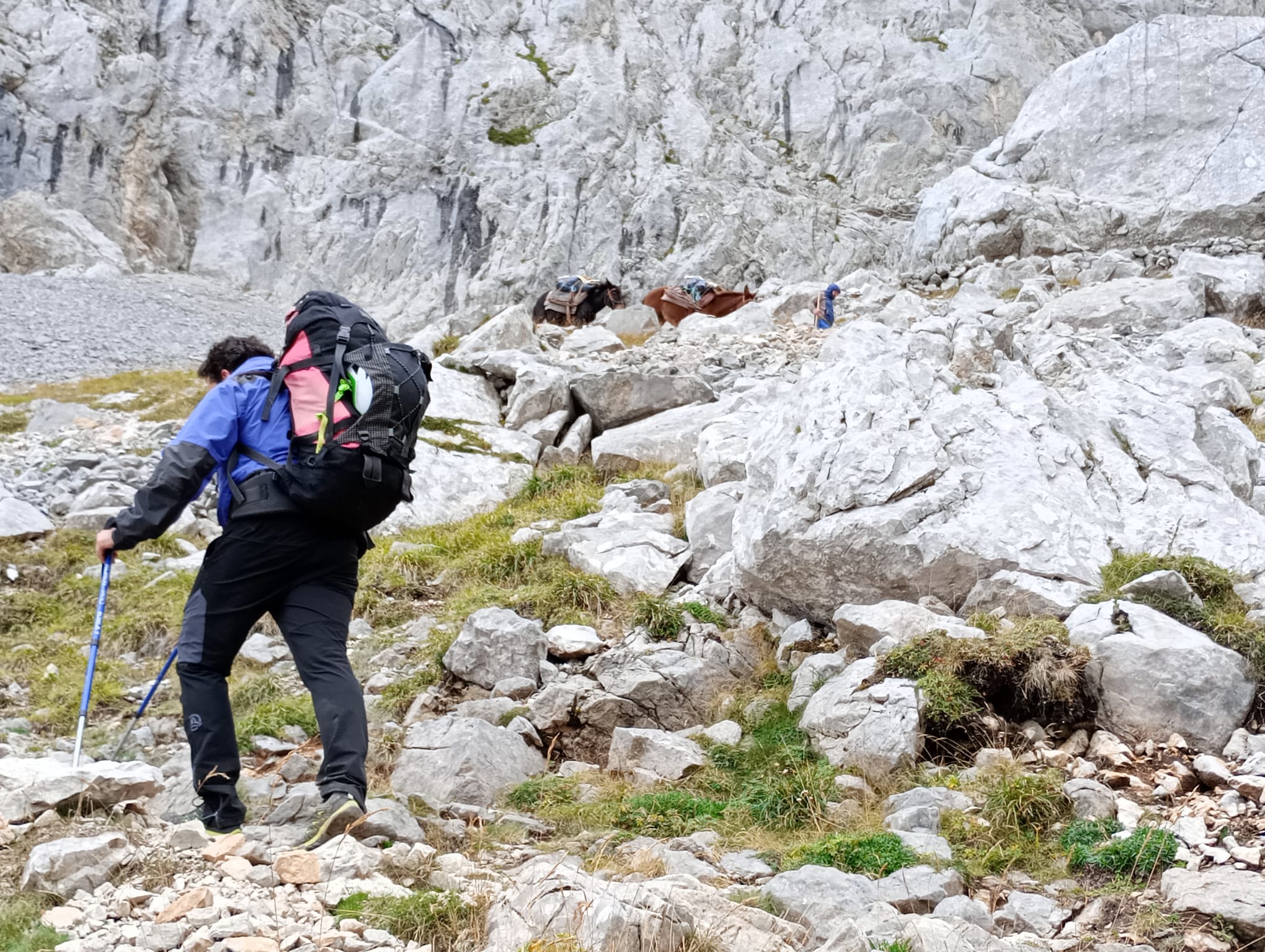 | Primeros pasos por el collado de Pandebano, aún con algunos claros en el cielo |